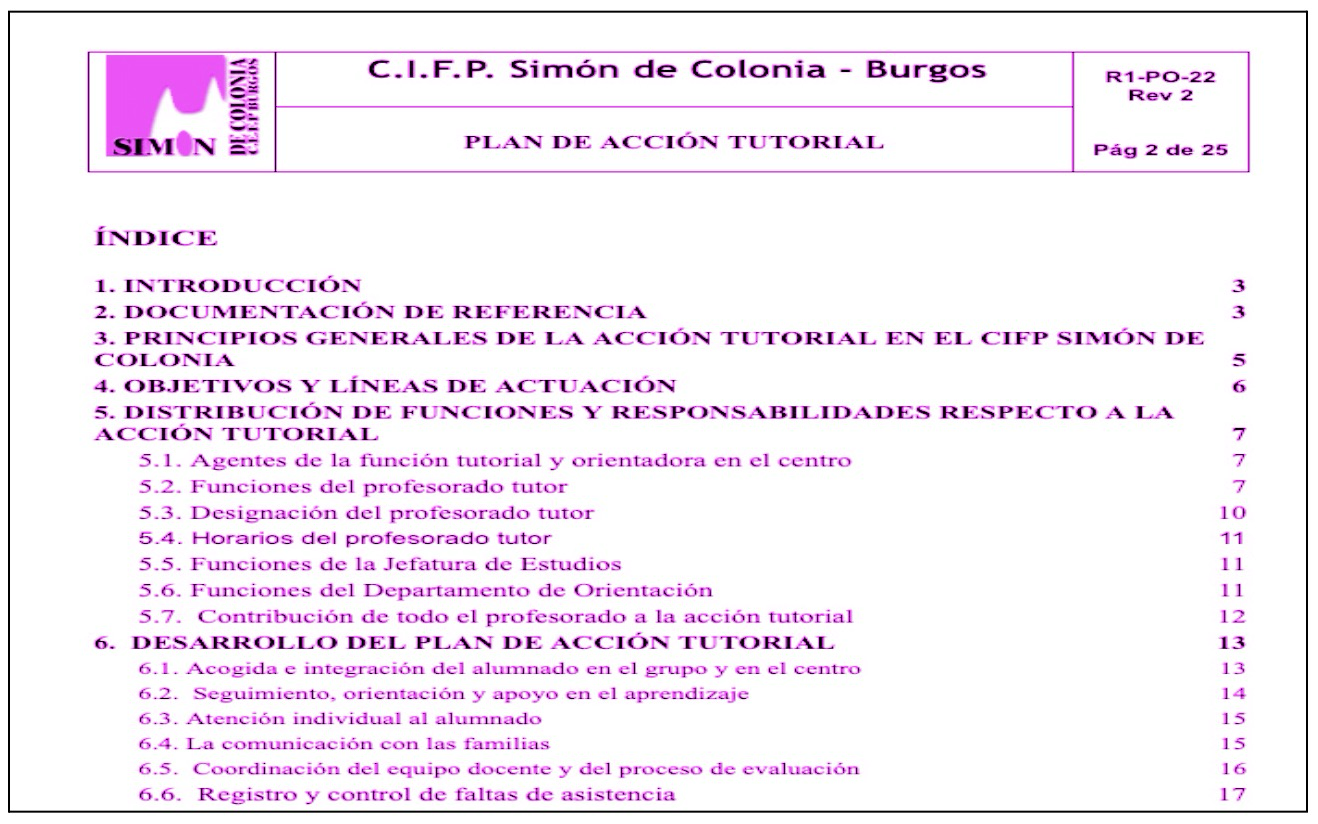- Es el marco en el que se especifican los criterios para la organización y las líneas prioritarias de funcionamiento de la acción tutorial en el centro.